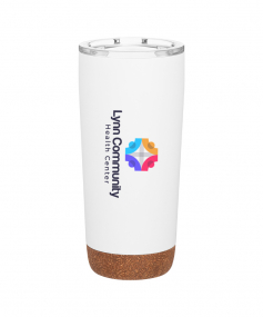 20 Oz. double wall 18/8 stainless steel thermal tumbler with copper vacuum insulation, clear push-on lid with sliding closure, and synthetic cork base. Individual gift box. Hand wash recommended. Do not microwave. Complies with FDA, Prop 65. 7.625" H x 3.5" W