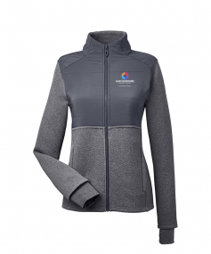 Pillow tech fabric: quilted, lightweight with warmth-retaining fill; Encore double-knit fleece with woven insulation for warmth and comfort; Molded center front zipper with branded zipper pull;